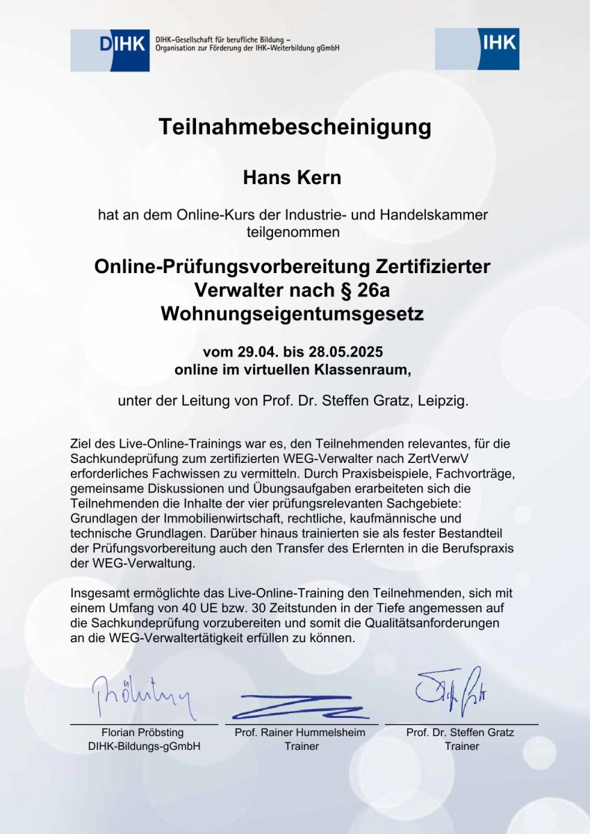 Fortbildungsnachweise gemäß § 15b Abs.1 MaBV